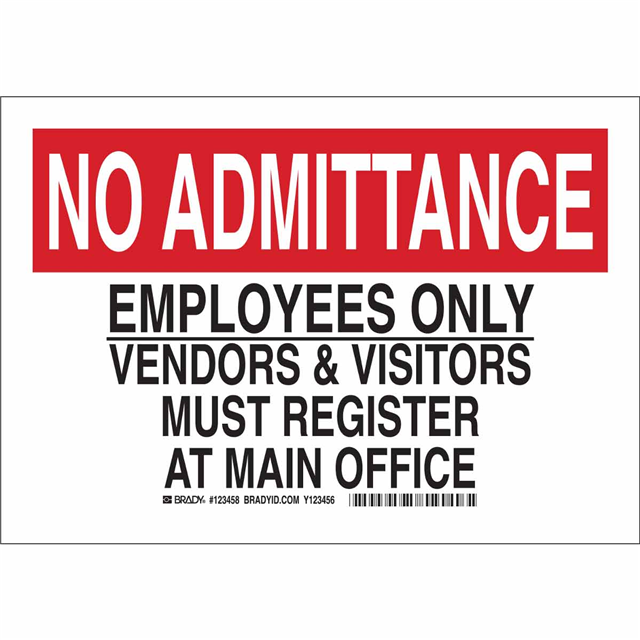 | Label Type | No Admittance. No Admittance Employees Only Vendors. Visitors Must Register At Main Office |
