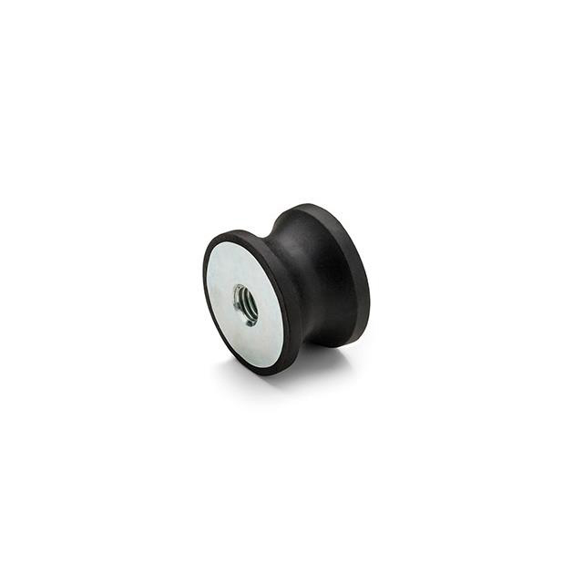 This Elesa foot features a threaded stud mounting system for secure installation. Its cylindrical shape with a recessed center enhances stability and load distribution. The rubber material offers excellent shock absorption and non-slip properties, making it ideal for heavy-duty use. Operating effectively across various environmental conditions, this foot is built for long-term reliability.