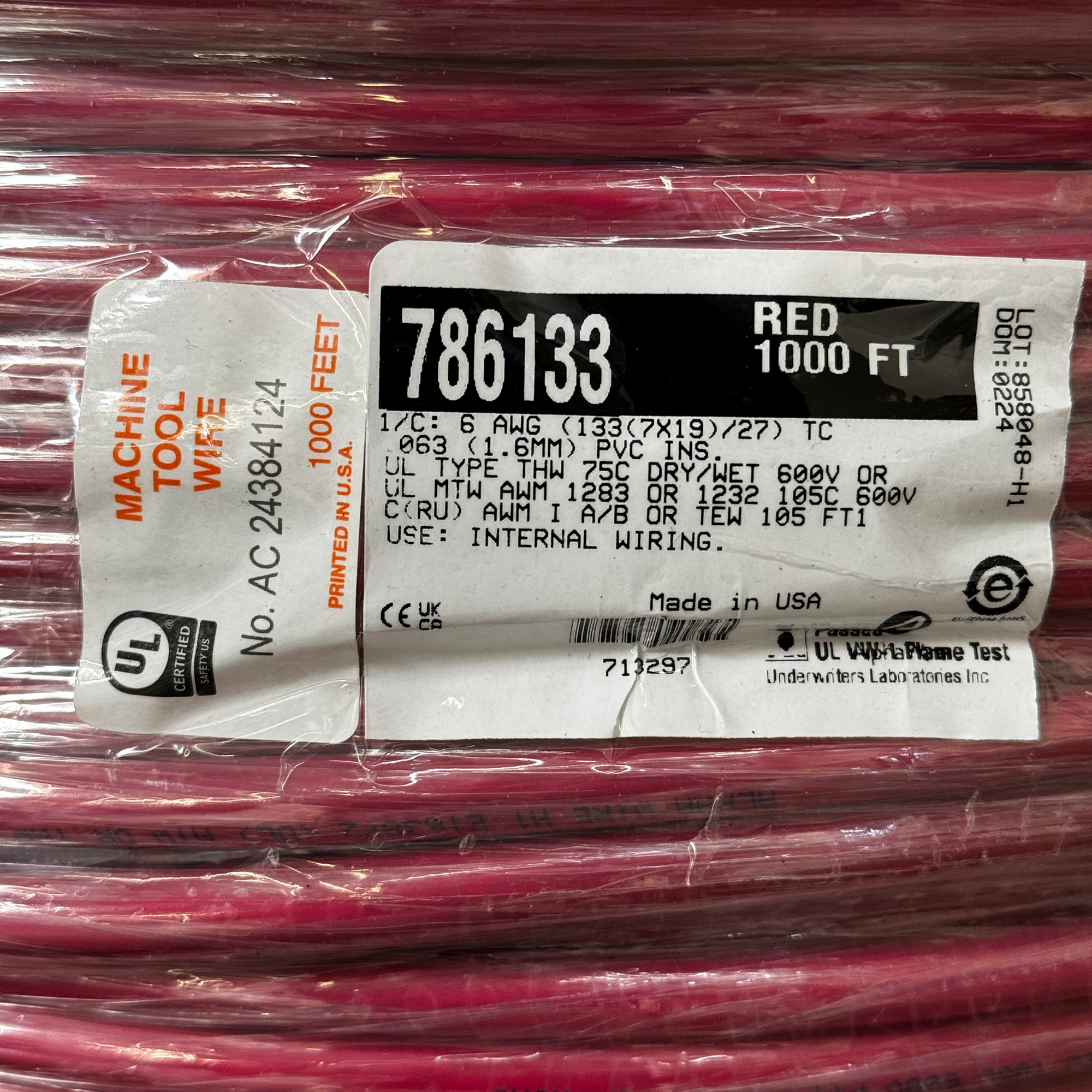 Alpha Wire 786133 Hook up Wire – 1000 ft Red 6AWG Stranded – In Stock